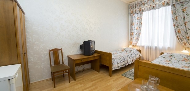 В номере: 2-односпальных, шкаф/гардероб, телевизор, холодильник, чайник, столовые приборы.